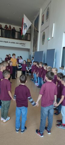 Október elsején zenével telt meg általános iskolánk. Szünetekben a hangosíton keresztül, a nagyszünetben pedig több osztály előadásában szólt a dal. Hallhattunk zongoramuzsikát, furulyát, gitárt, dobot is, melyek a dallamokat segítették. Nagy ajándék a közös ének, muzsika, jó volt ezt megélni a Zene Világnapján!