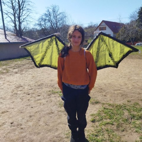 Ki ne hallott volna a híres, nevezetes zengővárkonyi sárkányokról? Az általános iskola 7. osztályos tanulója, Lévai Katinka, Mohácsiné Pichler Nóra tanítványa, a tél végi napfényben vagány lazasággal viseli szárnyacskáit…