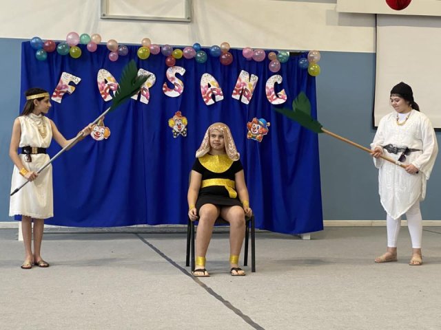 Február 6-án, pénteken 14 órától vidám farsangi ünnepséget tartottunk iskolánkban. A programot a diákok lendületes strucc-tánca nyitotta meg, amely azonnal megalapozta a jó hangulatot.