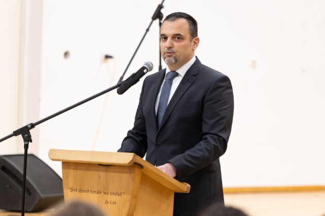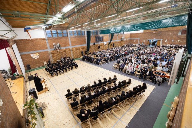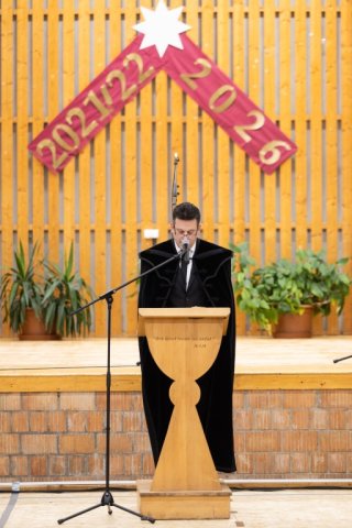 „A gimnáziumi évek utolsó hónapjai, utolsó hetei hasonlatosak egy akciófilm jeleneteihez, amelyekben a hős felkészül a végső küzdelemre” – fogalmazott Molnár Péter igazgató ünnepi beszédében, aki kiemelte: a Pécsi Refi modernkori történetében az első ballagó osztály diákjainak 1996-ban tűzték fel a szalagot. „Harminc évvel később a hagyományt veletek folytatjuk, annak reményében, hogy a ti évfolyamotok is az itt megtapasztalt értékeket, értékrendet bátran és büszkén viszi magával” – mondta Molnár Péter, aki az akciófilmes hasonlattal rámutatott: filmünk forgatókönyvét nem mi írjuk. „Életünk főhőse Jézus” – fogalmazott.