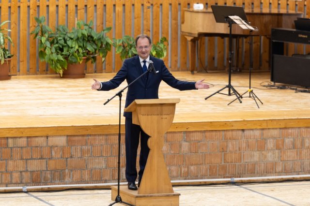 „Harminc évvel ezelőtt, a Refi első szalagtűzőjén a most benneteket fényképező hivatásos fotós és az igazgatótok állt ugyanebben a helyzetben, mint most ti” – szólt a végzősökhöz Hoppál Péter, a Fenntartó Igazgatótanács elnöke, aki kiemelte: nem múlik el nyomtalanul az, amit a diákok a Refiben kaptak, és felnőtt korukban is magukkal visznek. „A magyar református iskolarendszer Istennek, hazának és tudománynak nevel és tanít” – üzent Jókai Mór szavaival a végzős diákoknak Hoppál Péter, majd kiemelte, hogy az ötszáz évvel ezelőtti mohácsi csatára a reformáció volt a válasz. „Ti vagytok az Isten, haza és a tudomány reménysége” – fogalmazott Hoppál Péter.