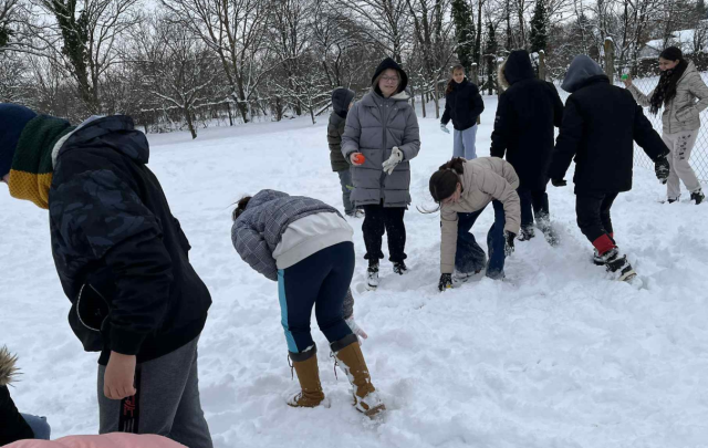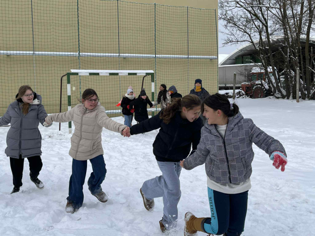 Az újév időjárása meglepett bennünket. Holle anyó alaposan megrázta dunnáját. A gyerekek egy része nem is tapasztalt még ekkora hóesést. Kihasznàltuk ezt a pompás lehetőséget, és a testnevelés tanóràkat kint töltöttük a szabadban, ahol a gyerekek megtapasztalhattàk a hóban futás nehézségeit. A hó nem tapadt jól, így csak mini hóemberek készültek. Előkerültek a szánkók, s hóangyalok lepték el a kézilabda pályát. Váltóversenyek, hógolyócsaták, hó alatti kincsek keresése, célbadobások színesítették a havas tesi órákat. Vidámság, nevetés, jókedv töltötte be az iskola udvarát.